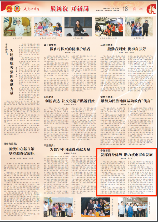 兩會(huì)專(zhuān)題 | 《人民政協(xié)報(bào)》:辛鋒委員:發(fā)揮自身優(yōu)勢(shì) 助力核電事業(yè)發(fā)展