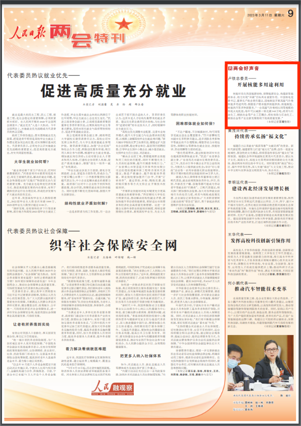兩會專題 | 《人民日報》:兩會特刊|盧鐵忠委員——開展核能多用途利用